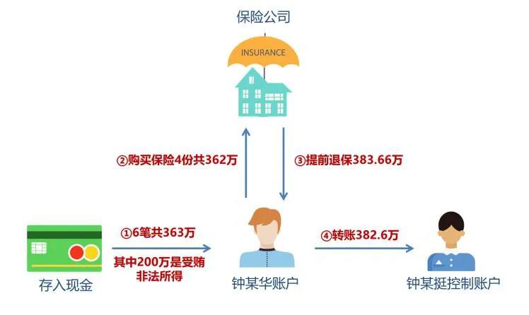 2、廣東惠州鐘某華涉貪腐洗錢(qián)案。鐘某華系原廣東省惠州市某縣常務(wù)副縣長(zhǎng)鐘某挺的侄子。2010年,鐘某挺利用職務(wù)便利,為惠州某實(shí)業(yè)公司分包某小區(qū)“三舊”改造工程提供便利。2012年,鐘某挺向該公司負(fù)責(zé)人索要人民幣200萬(wàn)元。2013年,鐘某華在明知鐘某挺提供的款項(xiàng)為受賄犯罪所得情況下,仍通過(guò)提供本人資金賬戶(hù)和購(gòu)買(mǎi)大額保險(xiǎn)產(chǎn)品并提前退保等方式將鐘某挺受賄款進(jìn)行“洗白”。2020年10月,惠州市某區(qū)人民法院判決被告人鐘某華犯洗錢(qián)罪,判處有期徒刑二年,緩刑三年,并處罰金人民幣十二萬(wàn)元。