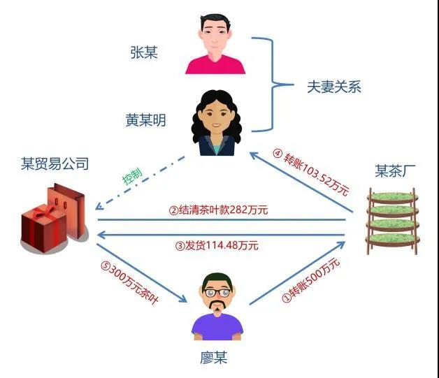通過(guò)虛高交易掩飾犯罪資金。佛山黃某明案中,2015年行賄人廖某按張某要求,共轉(zhuǎn)賬500萬(wàn)元到云南某茶廠銀行賬戶(hù),某茶廠扣減與張某妻子黃某明控制的某貿(mào)易公司之間日常購(gòu)茶葉款項(xiàng)282萬(wàn)元后,發(fā)送了價(jià)值114.48萬(wàn)元的茶葉給該貿(mào)易公司,并將余款103.52萬(wàn)元轉(zhuǎn)入黃某明銀行賬戶(hù),張某隨后讓黃某明從該貿(mào)易公司將價(jià)值不到300萬(wàn)元的茶葉送貨給廖某。黃某明利用該貿(mào)易公司,以明顯高出市場(chǎng)價(jià)格向行賄人出售茶葉的方式,協(xié)助張某掩飾200萬(wàn)元受賄資金。
