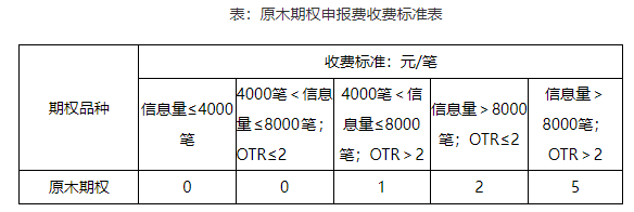 原木期貨和原木期權收取申報費,收費標準見下表,按日收取。